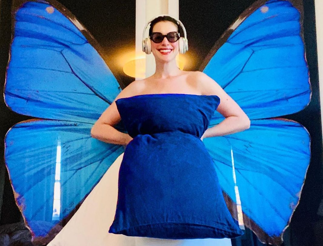 アン ハサウェイ ピローチャレンジ でブルーのドレス姿に プリティ プリンセス の主人公に変身 映画がもっと面白くなる映画情報サイト ムビッチ